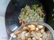 9. 将煎好的蚝肉下锅炒匀,加适量的盐和生抽调味