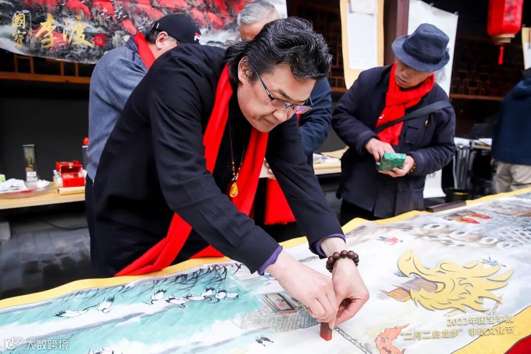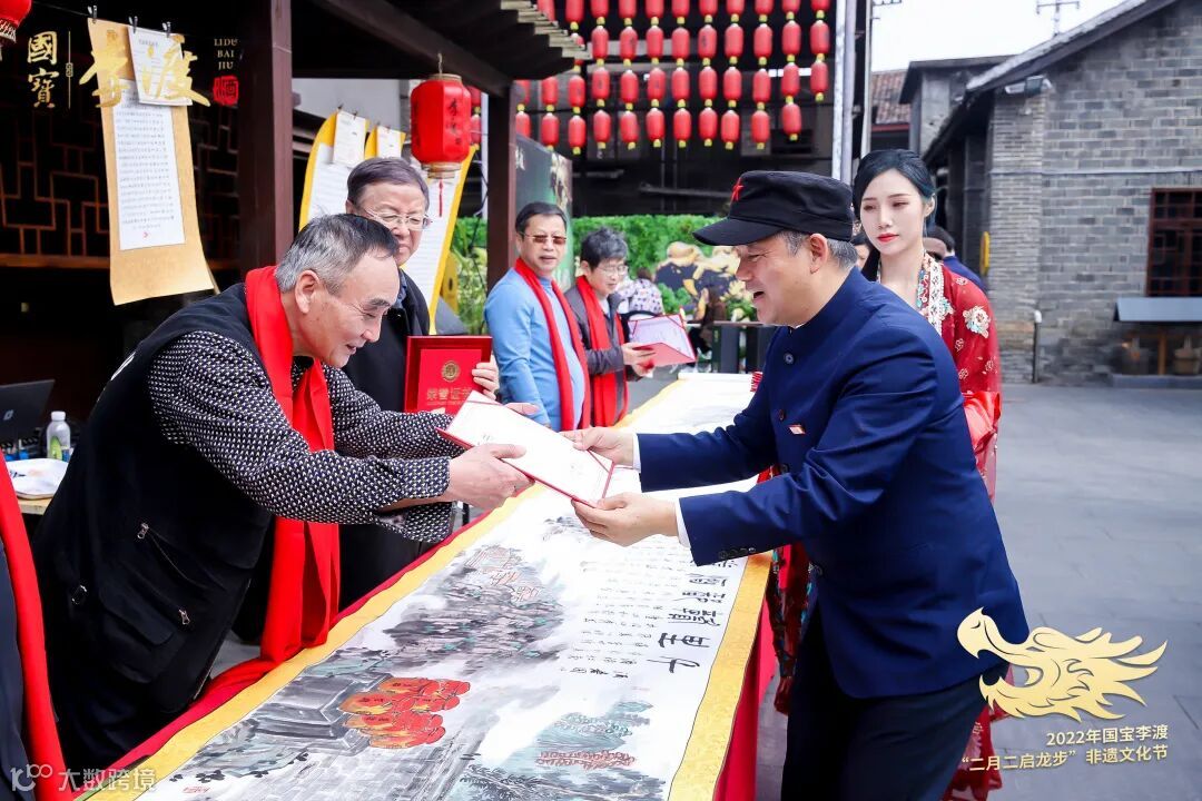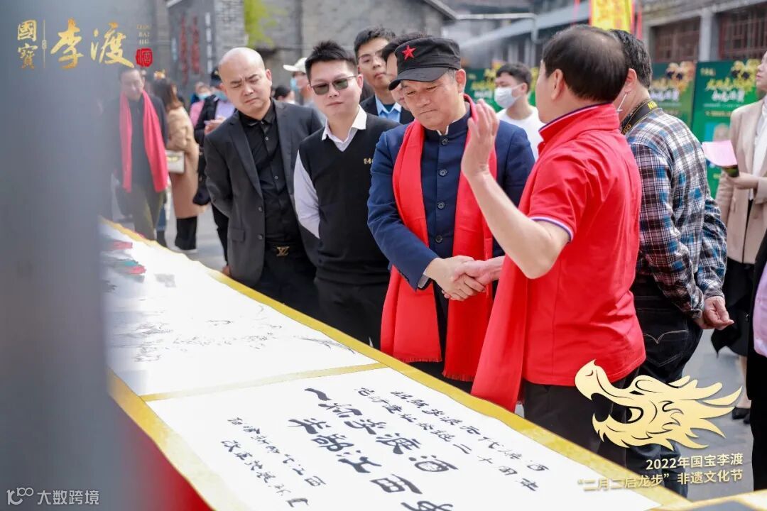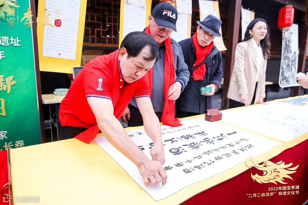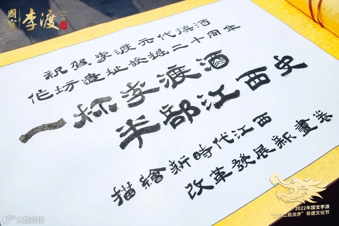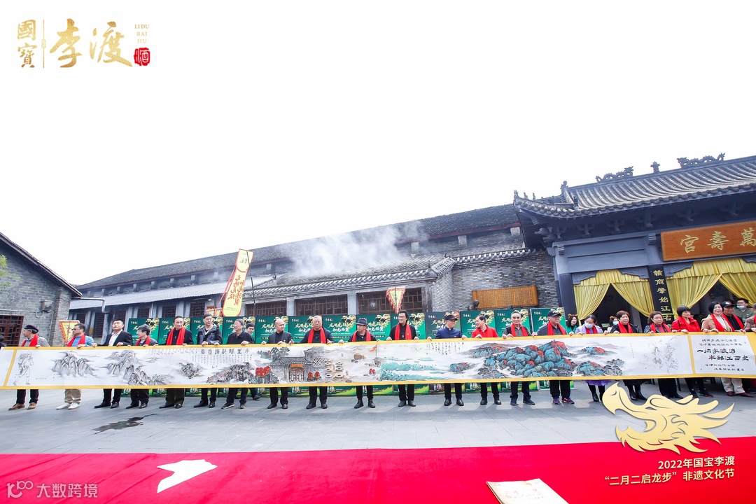 2002年,李渡元代烧酒作坊遗址考古发掘,解开了世界蒸馏酒的起源之谜。2022年,李渡元代烧酒作坊遗址迎来考古发掘20周年,李渡酒业邀请20位书画家莅临“二月二启龙步”非遗文化节现场,共同创作20米长卷《千里赣鄱酒卷图》,展现赣鄱大地好山好水酿好酒的宏伟风貌,以及李渡的文化内涵。