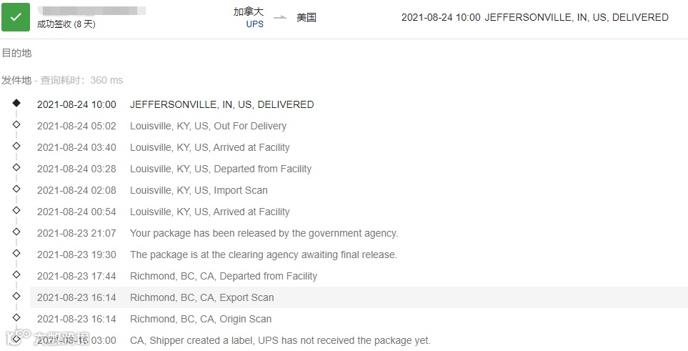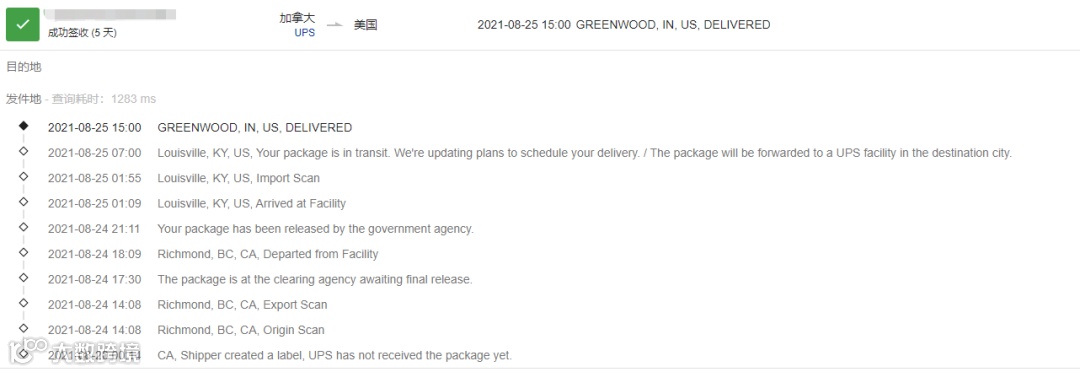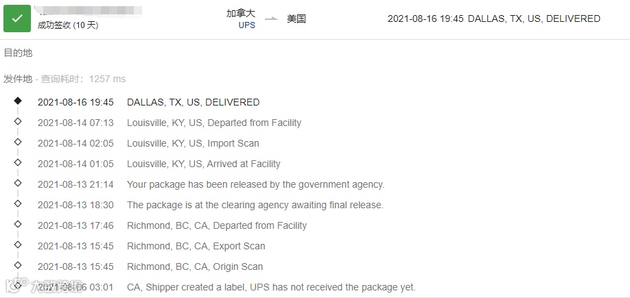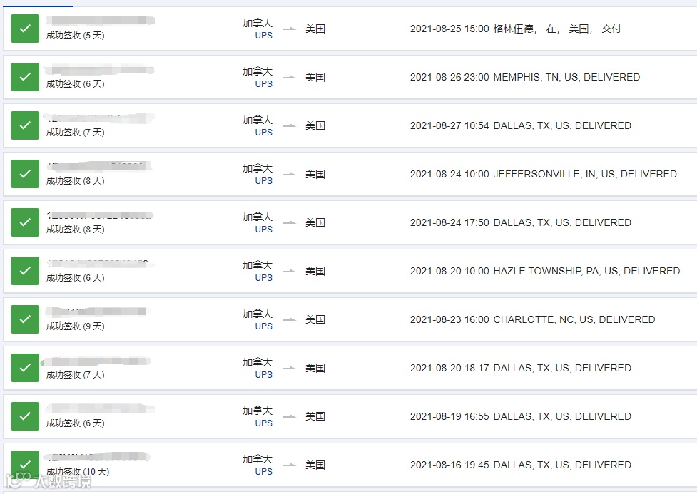 上图是近期在货兜下单195美国空派的单号轨迹,最快5天就签收了,最迟也不超过10天,平均签收时效8天左右,时效非常稳定。
