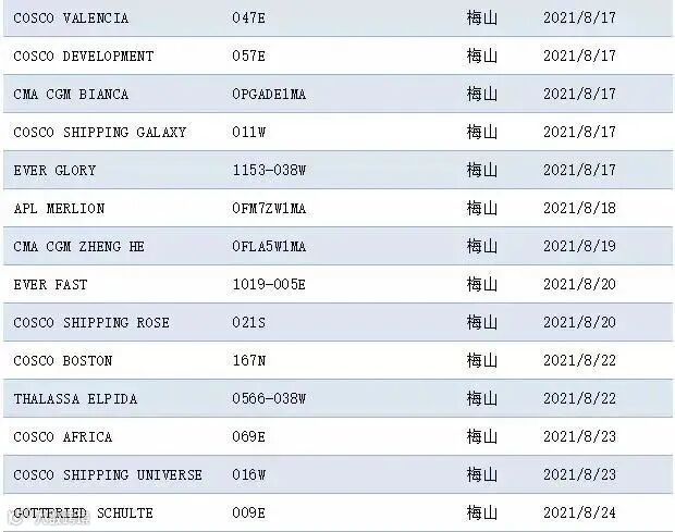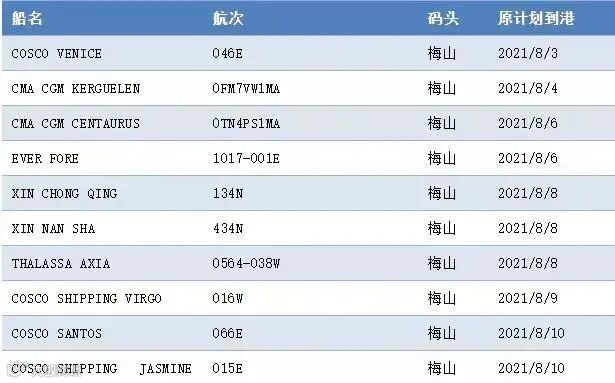 8月11日上午,由于宁波舟山港码头发现1例新冠病毒核酸检测阳性人员,梅山国际集装箱码头关闭,出口集装箱的进港时间限制在船只预计到港时间的两天内。
