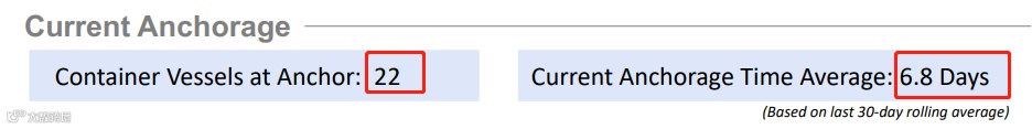 货船在锚地的平均等待时间从3月份的8天下降到7月份的5天,但截至周二,锚泊的平均等待时间又回到了6.8天。卸柜预计需要4~7天,排队上火车要等2~3周的时间。