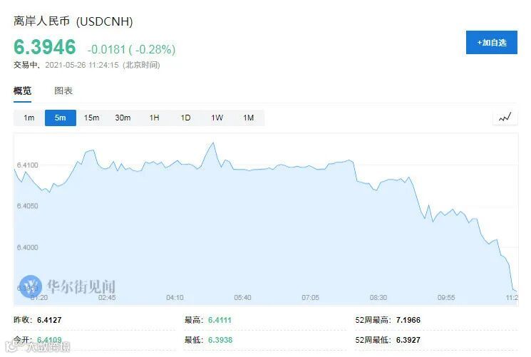 5月25日,升势强劲的人民币站上近三年高位。在岸人民币对美元汇率跳空高开,破位上行近200点,盘中最高触及6.4016;离岸人民币对美元汇率强势拉升,一度升破6.40关口,最高触及6.3944。