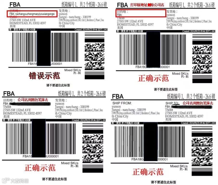 所以建议打印FBA标签前,先删除公司名再打印标签。