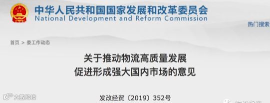 发改委等部委发布《推动物流高质量发展促进形成强大国内市场的意见》。
