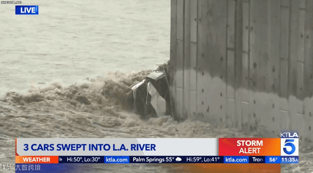 据KTLA报道,13日早上,有3辆车坠入雨水泛滥的洛杉矶河,救援人员正在寻找他们的下落。