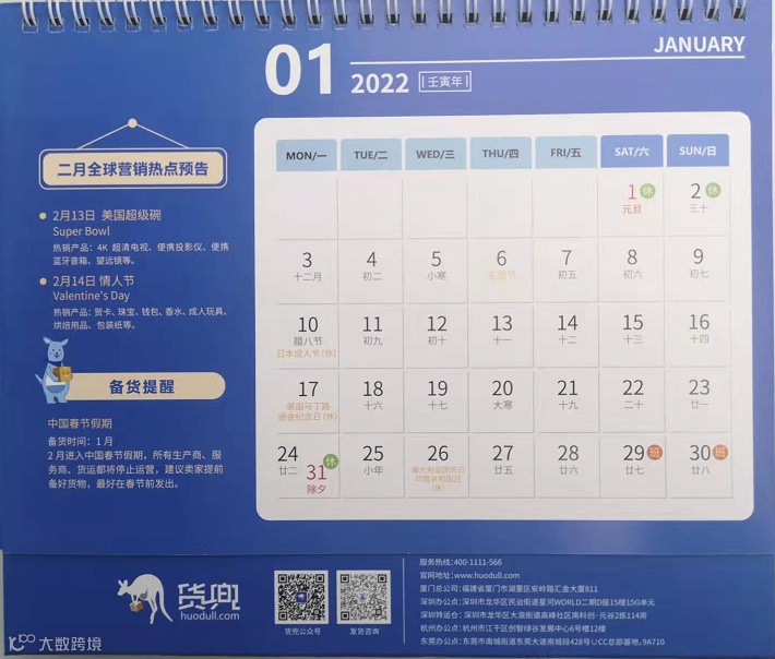可领取《2022年跨境电商专属台历》1本!