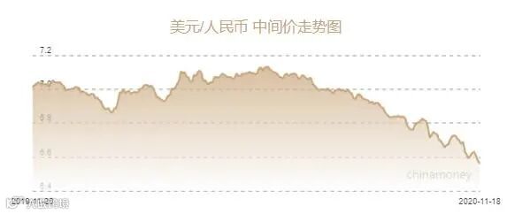 截至11月17日18时,中国境内在岸市场人民币兑美元汇率触及6.5527,盘中创下年内新高6.5506;境外离岸市场人民币兑美元汇率则触及6.5479,盘中同样创下年内新高6.5413。这意味着在区域全面经济伙伴关系协定(RCEP)签订后的两个交易日内,人民币汇率涨幅超过400个基点。