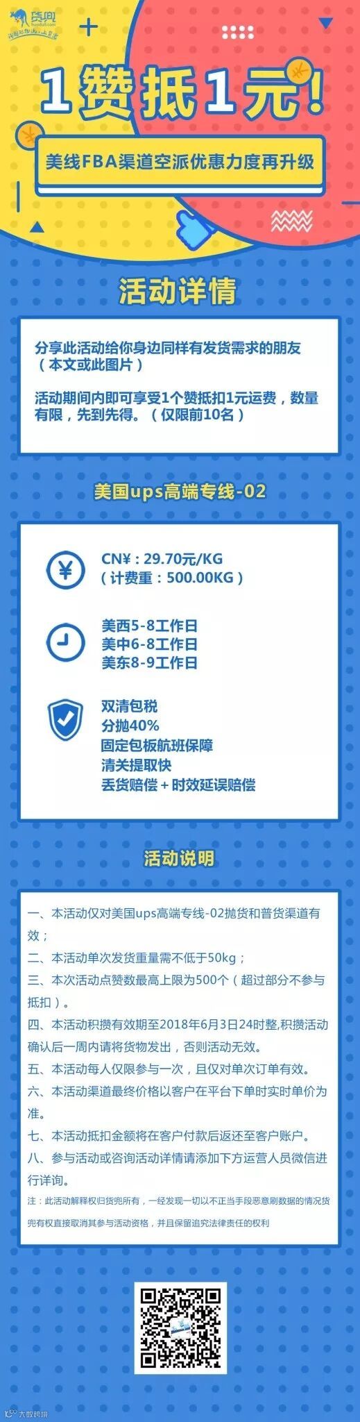 【兜划算】1赞抵1元,本周美线FBA空派优惠力度再升级