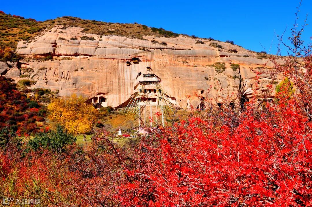 这里的秋天,不止有层林尽染的绚烂,更有一份沉淀千年的禅意。你可以在清晨踩着微凉的露水,看阳光穿过金黄的杨树林,为千年石窟镀上一层温暖的金光;也可以在午后沿着山径漫步,听远处的经幡随风轻响,看丹霞的赤红与松林的翠绿在秋阳下碰撞出奇妙的色彩。