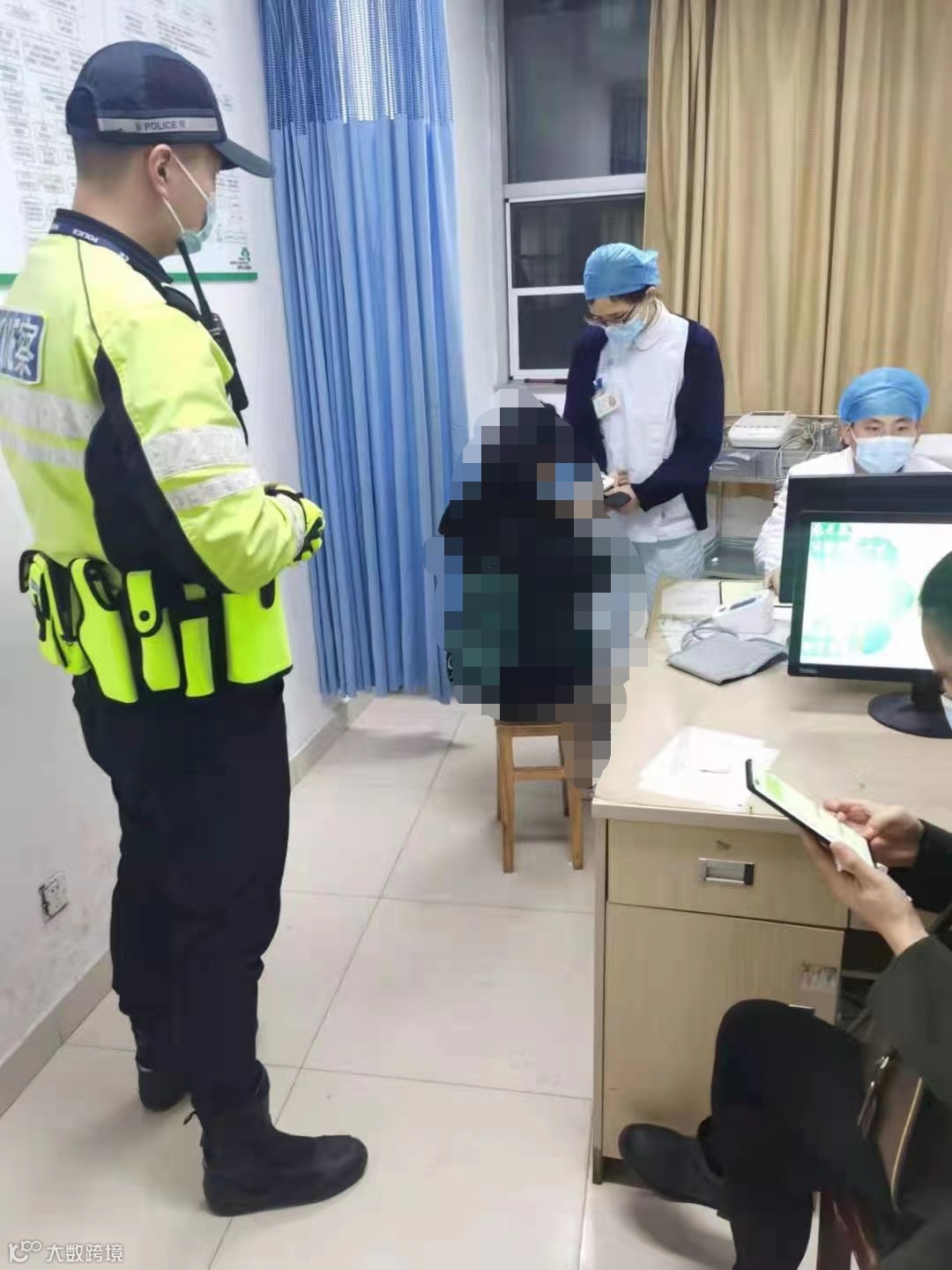 看到面色苍白、呼吸急促的女孩,铁骑队民警当即驾驶警车将女孩送往市人民医院,并与其父母取得联系。在医院期间,一名民警帮助女孩送检化验,另一名民警则陪同女孩拍CT并垫付了医药费,为缓解女孩紧张情绪,民警们不断用幽默平和的话语分散女孩注意力,减轻其疼痛。