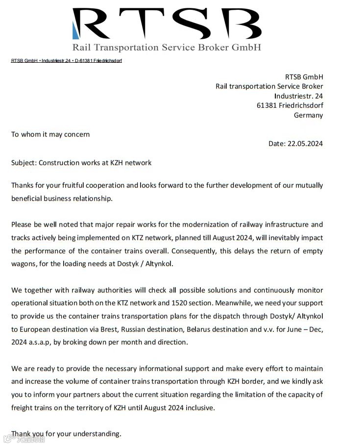 班列通知:因哈萨克铁路网络维修升级,预计持续到8月,车板循环,换装时效等都会受影响延误,请知悉。