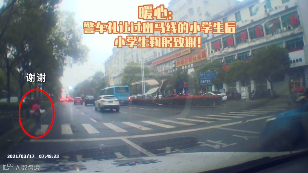 恰逢此时,交警城南大队民警驾驶警车巡逻至此,见状后,当即减速将车停了下来。但小女孩还是有些犹豫不敢过马路,民警连忙开窗摆手示意让其先通过。