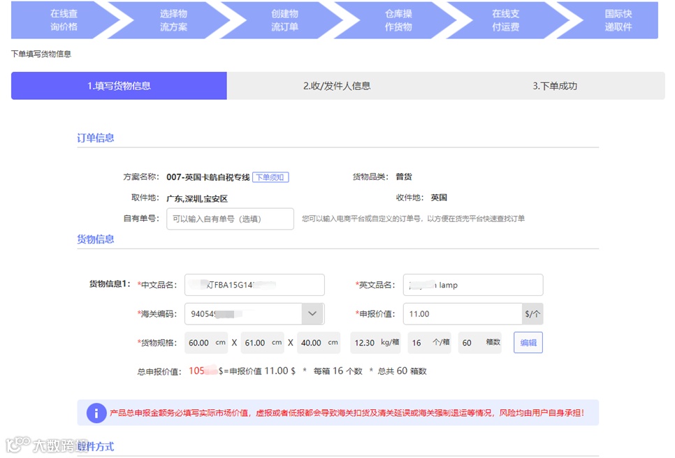 货兜与第三方物流保险公司联手推出平台线上投保功能,货兜客户可以根据自身货值来投保。