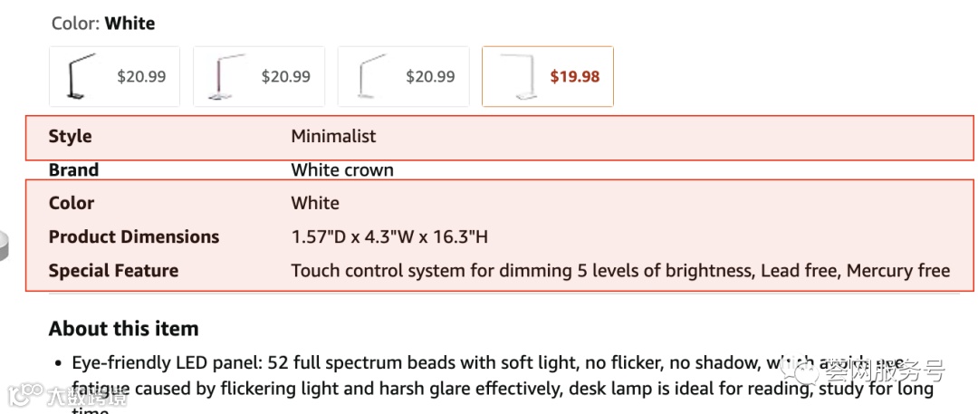 其次,在对手Listing页面五点描述上方查看属性,属性一致的情况下你选择的属性值需要和他们一样