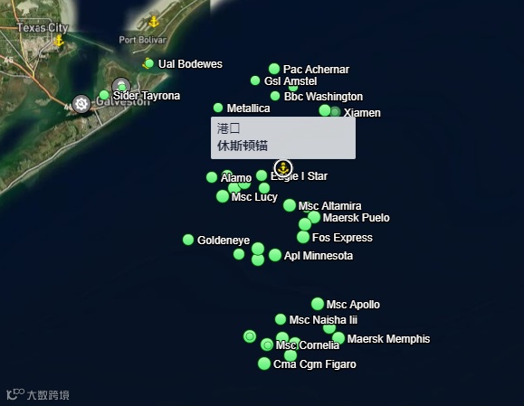 7月13日 休斯顿港锚地集装箱船分布图