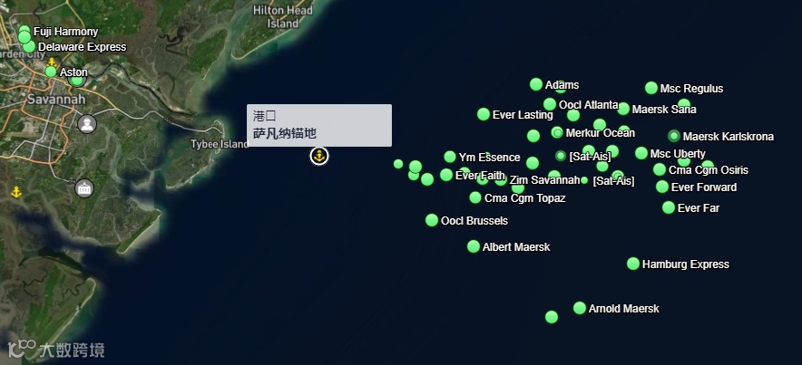 萨瓦纳港约有36艘货柜船正在等待泊位,总货量估计有343085箱,名列全美第一。