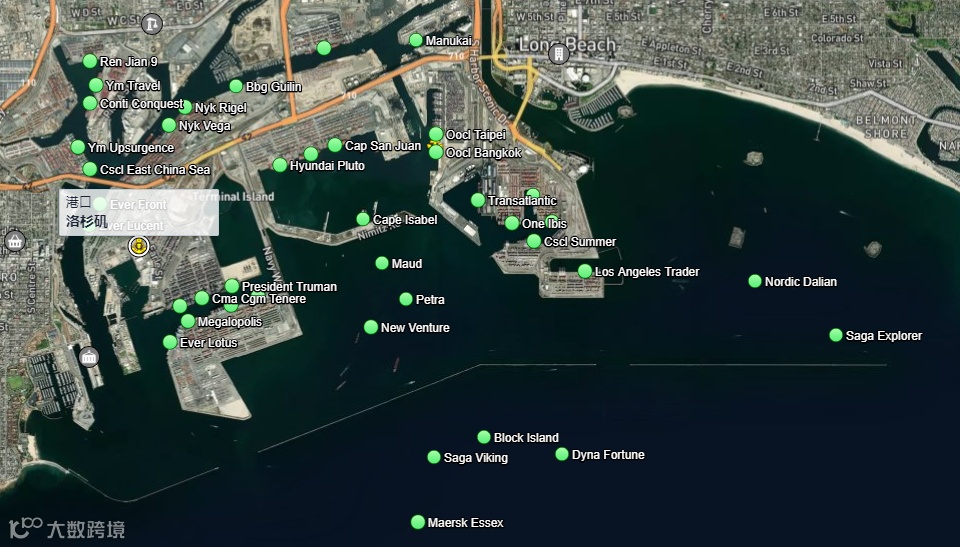 7月13日 洛杉矶/长滩港锚地集装箱船分布图