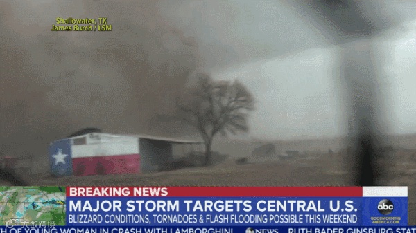 其中科罗拉多州已有超3万人遭遇断电,得州遭受数场龙卷风横扫,俄克拉荷马州及肯塔基州部分地区相继发布洪水警报。