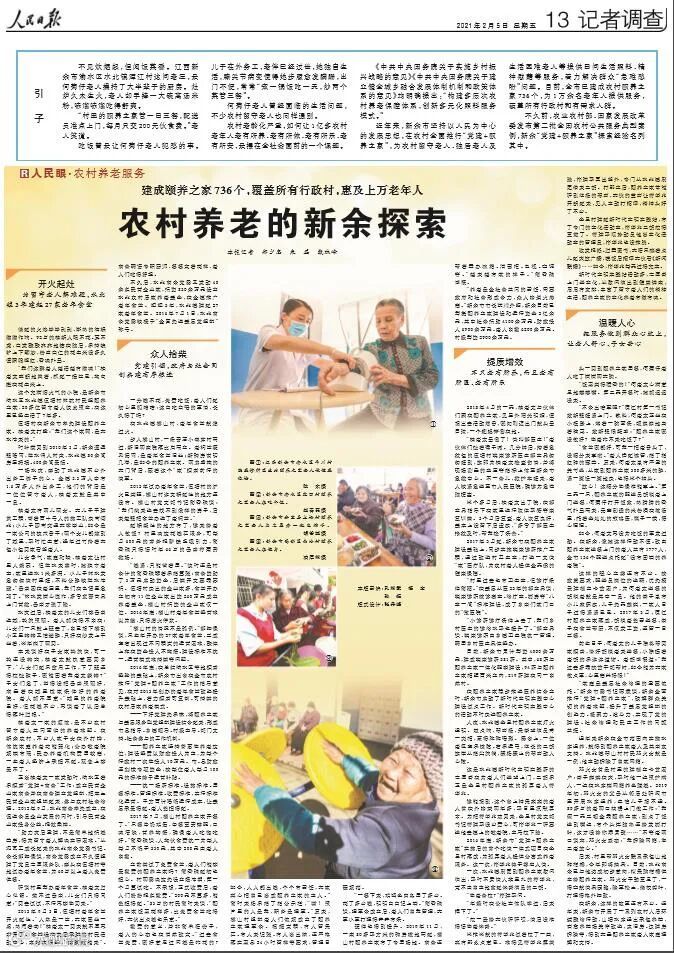▲2021年2月5日,《人民日报》第13版整版刊发《农村养老的新余探索》。