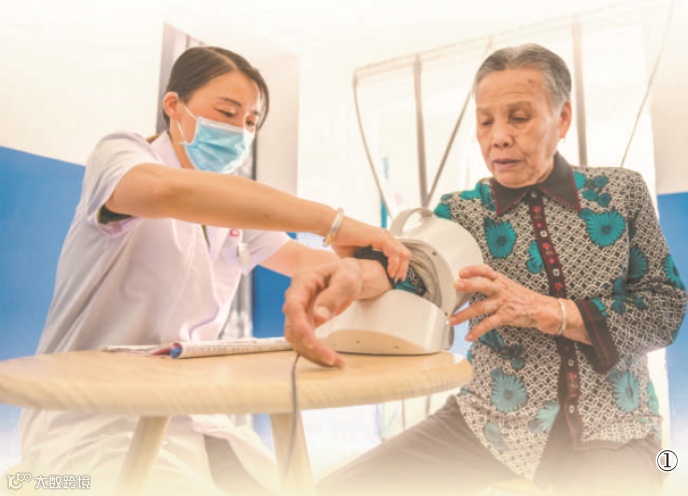 ▲江西新余市渝水区平川村晓康诊所医生为颐养之家老人做健康体检。陈东摄