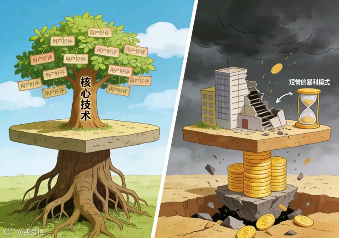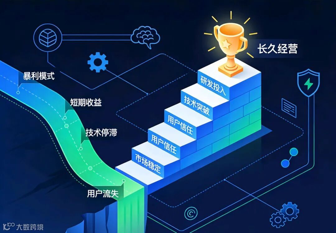 靠蹭大企业爆款流量、无自主研发的产品,终究是昙花一现。行业数据表明,缺乏研发的模仿型产品,市场存活期不足1年,盈利衰减速度超每月30%,最后只会陷入低价内卷,和盘圈割韭菜无差别。