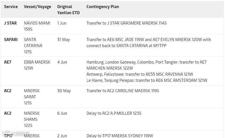 此外,鉴于盐田港集卡服务也受到码头拥堵影响,马士基预计,空箱提取时间至少会延迟8小时。