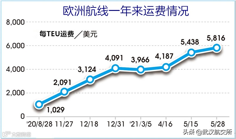 货兜了解到,5月27日,一个40英尺集装箱由中国上海到荷兰鹿特丹的运费报价涨到10174美元,较上周上涨3.1%,创十年新高。