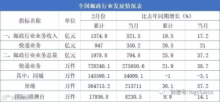 3月12日晚,国家邮政局发布了“春节月”2月快递行业的运行情况。