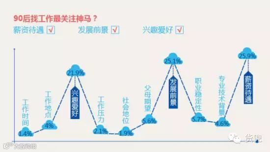 90后中,有83.5%的人表示不在乎加班。在找工作时,90后对工作