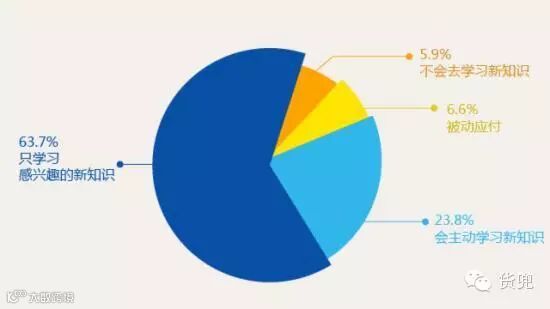 63.7%的90后青年会愿意学习自己感兴趣的知识,23.8%会主动学习所有新知识。