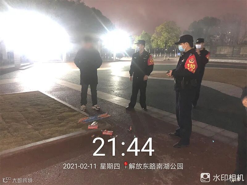 2月11日晚,抱石路派出所巡逻民警在南湖公园附近巡逻时发现2名正准备燃放烟花爆竹的少年,经批评教育后,当事人表示会遵守城区禁燃规定,后离开现场。