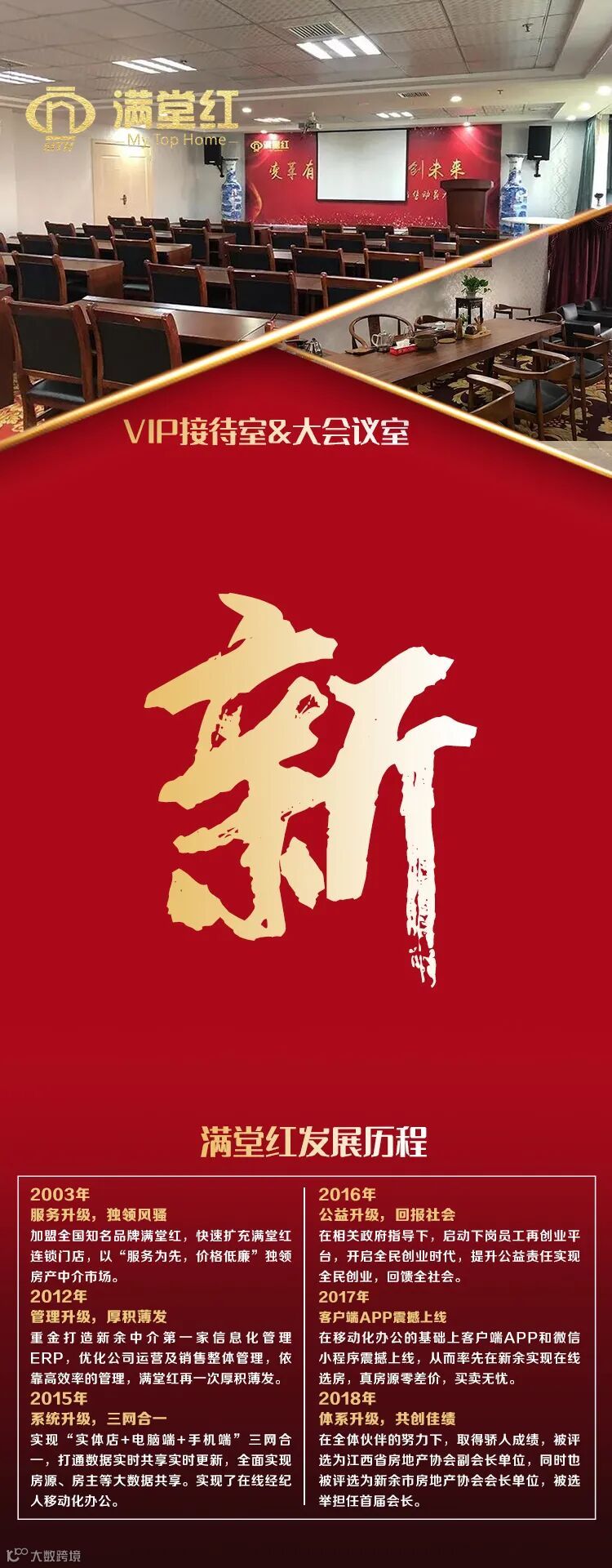 新余市满堂红房产红置业有限公司成立于2007年8月8日,是一家以房产为主,评估、装修等房产产业链其他衍生业务为辅的大型综合服务商。
