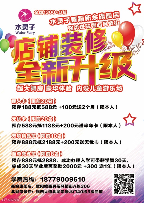 水灵子舞蹈城北校区成立于2020年7月份,地址设立在赣西大道北湖帝景40栋3楼(商铺)。短短两年的时间,在新余成就第二家水灵子舞蹈培训机构。