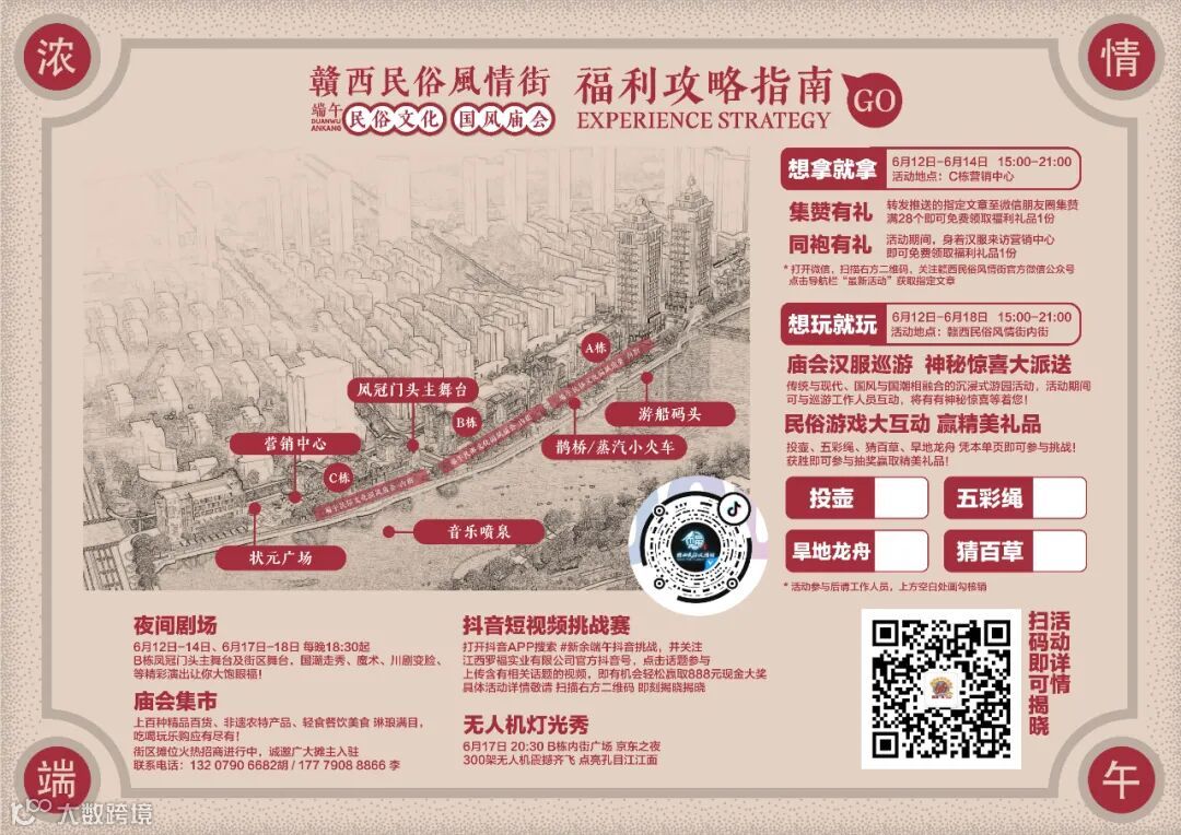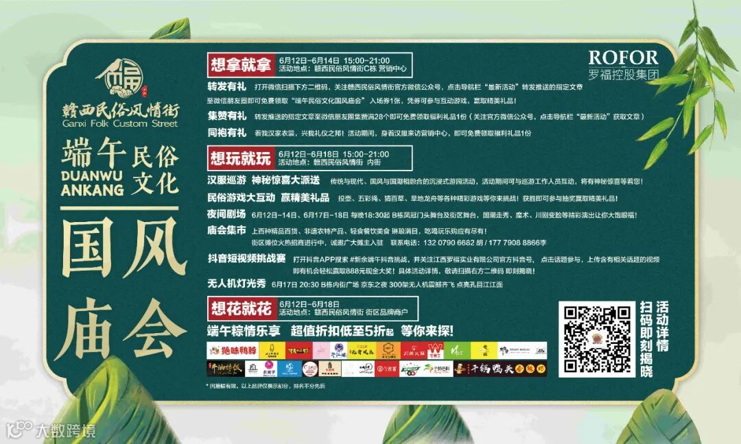 除此之外,6.12—6.18日,在赣西民俗风情街,端午民俗文化国风庙会,给你一个与“粽”不同的假期,吃、喝、玩、乐、游、购、娱一网打尽,这个端午来赣西民俗风情街尽情撒欢吧!