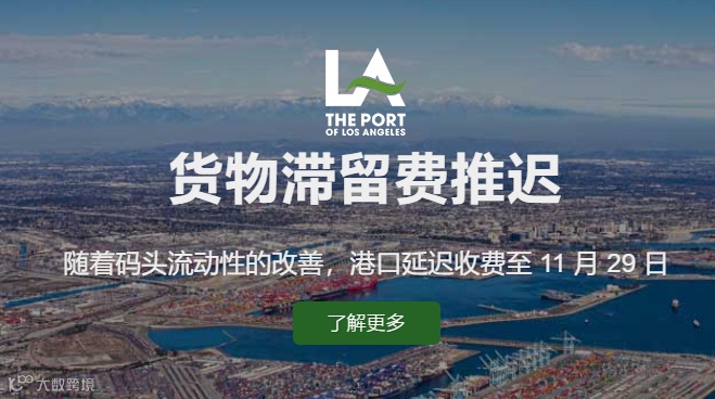LA/LB 港口自10月25日宣布收取高额集装箱滞留费后,从原定的执行日期11月1日,延期至11月15日、11月22日到现在的11月29日。