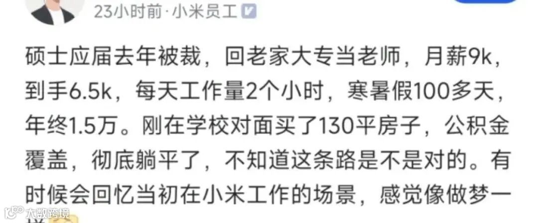 一位老同学突然联系我,说他从小米被裁后回老家当了大专老师,每天只工作2小时,感觉像做梦一样。这让我想起了职场上那些不得不做出的艰难选择。