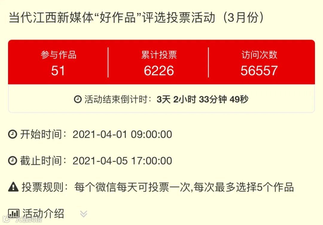 为进一步提升党刊传播力、引导力、影响力、公信力,吸引读者参与内容建设,打造优质内容资源,省委当代江西杂志社从2021年1月始开展新媒体“好作品”评选活动。