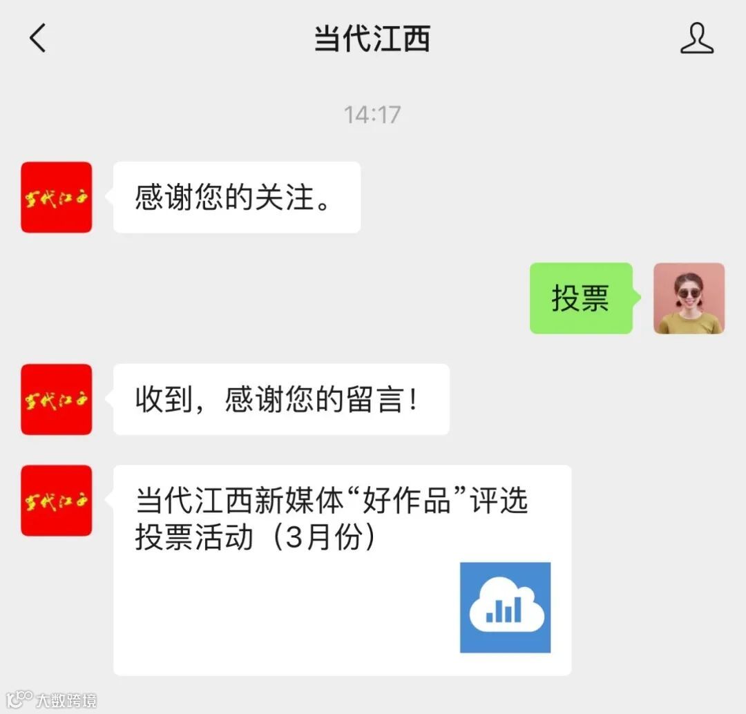 在消息栏(对话框)中回复“投票”后弹出投票链接
