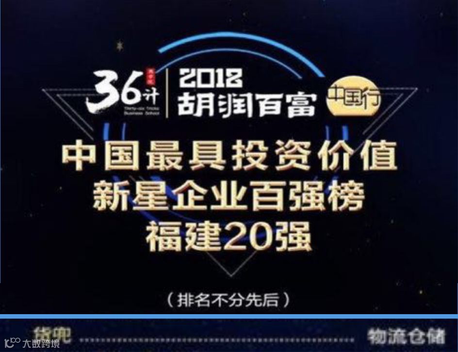 2018年3月入选胡润百富2018中国最具投资价值新星企业百强榜福建20强