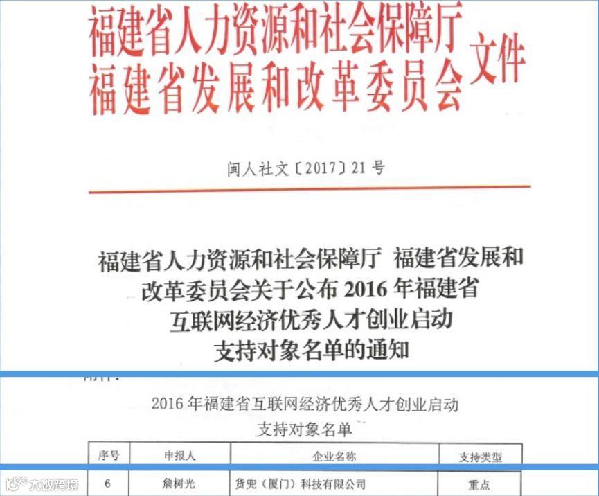 2016年12月被评选为福建省互联网经济优秀人才创业项目前10强重点扶持企业,并获得百万补贴