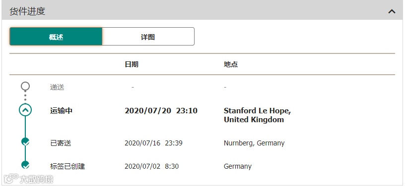 (卡航单号,7月2日创建,7月16日已提取)