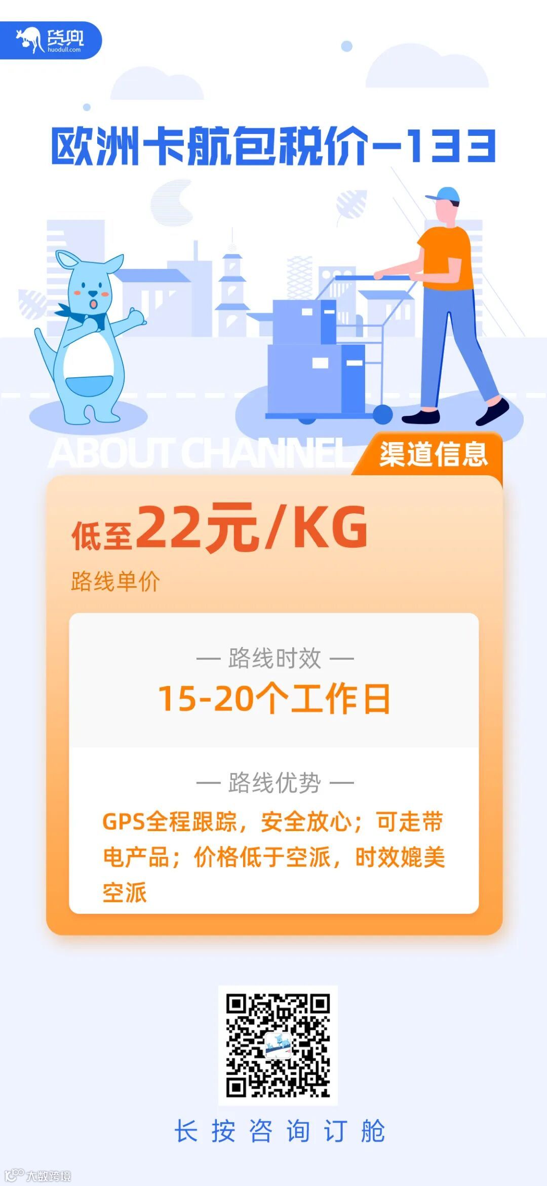 对此,货兜特别推出“中欧卡航推广周”活动,帮助卖家以媲美空派的时效,低于空派的价格,稳定、安全、高效出货!