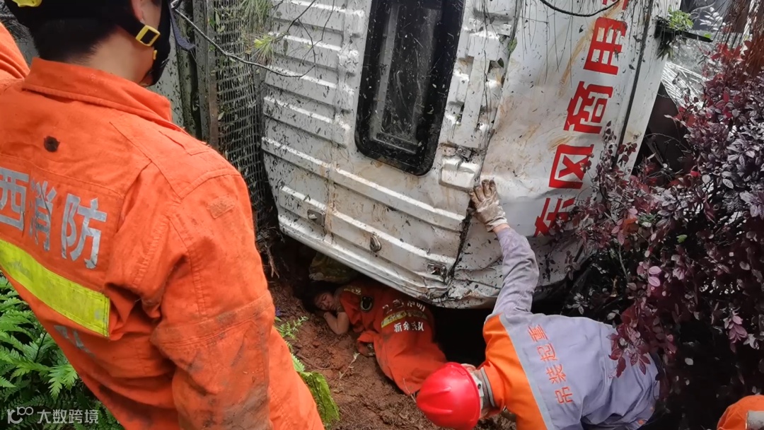 指挥员当即决定,一方面调派大型起吊机支援,一方面由指战员轮流爬入车头利用工具将被困女子身边泥土开凿出有效救援空间,指战员在徒手刨挖近一小时后,发现被困女子被车头底部挤压受力仍然无法脱困。