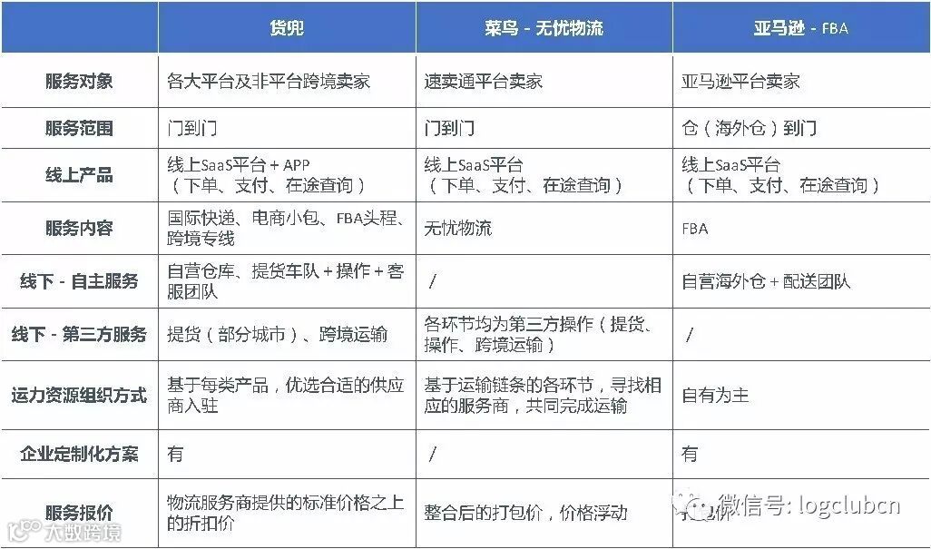 不难发现,无忧物流与亚马逊物流,主要是基于平台卖家,提供标准化物流服务方案,而货兜是从独立平台的角度,整合各类跨境物流商的产品与服务,为各跨境电商平台的卖家,提供自由选择的空间。