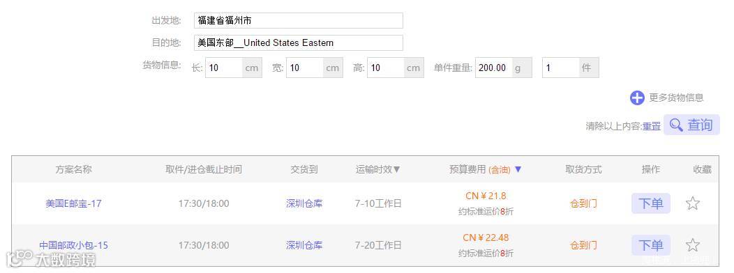 方案一:美国E邮宝-17 7-10个工作日 21.8元(含油)