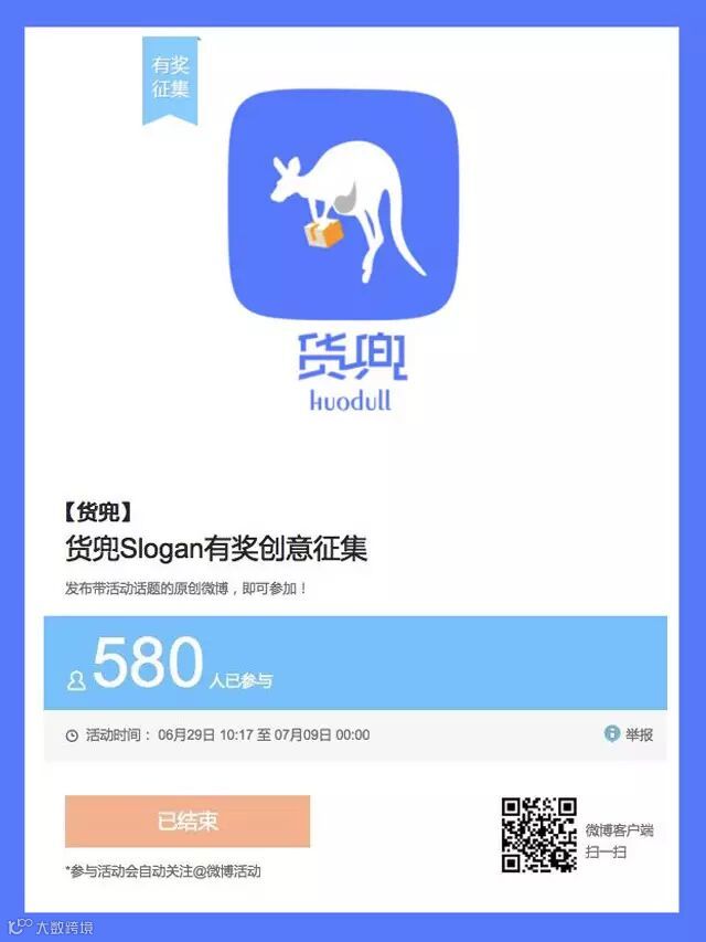 导读:货兜Slogan有奖创意征集活动,历经12天海选征集、公开投票环节,5.9万次阅读、580人次投稿、4000人次投票,在7月9日00:00圆满收官!