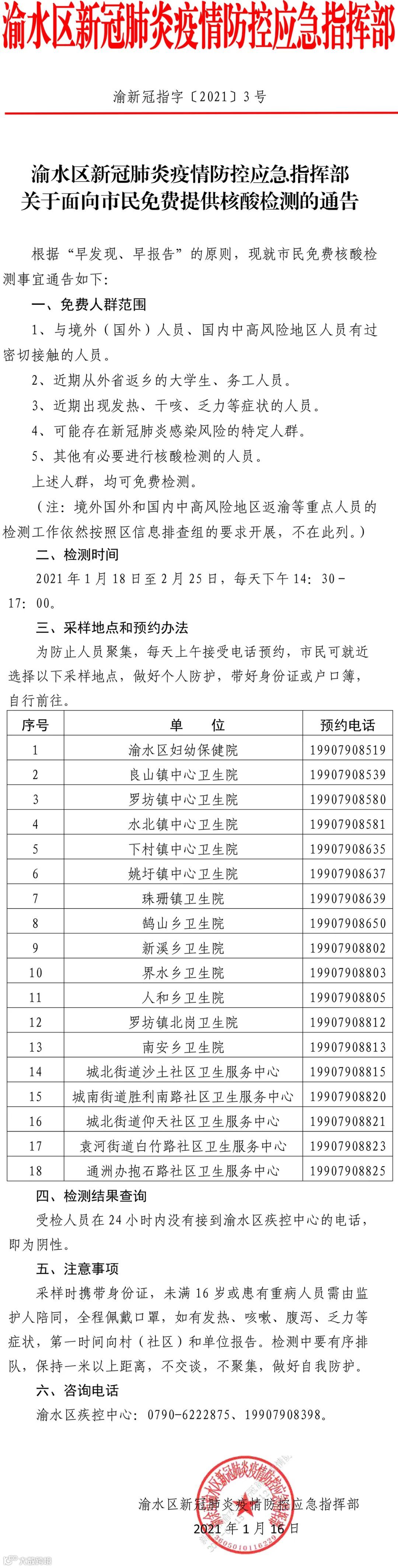 根据“早发现、早报告”的原则,现就市民免费核酸检测事宜通告如下: