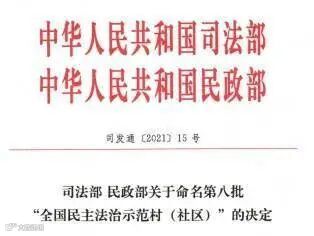 3月4日,记者从省司法厅获悉,司法部、民政部日前公布第八批“全国民主法治示范村(社区)”名单,我省南昌县武阳镇前进村等39个村(社区)上榜。开展“民主法治示范村(社区)”创建,是建设法治乡村的重要载体,也是实施乡村振兴战略的具体举措。近年来,江西各地以民主法治村(社区)创建为载体,坚持自治、法治、德治相结合,有效创新基层社会治理方式,不断推进基层治理体系和治理能力现代化,涌现出一大批先进单位。“全国民主法治示范村(社区)”每两年评选表彰一次,截至目前,我省获此荣誉称号的村(社区)已达138个。