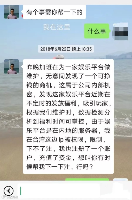 市民钟某称在2021年1月初的时候在微信上加了一个叫“陈天麟”的微信好友,两人在微信上开始以男女朋友的关系进行聊天。直到2021年1月30日,“陈天麟”给其发了一个网址,称自己在国外不方便,让其点击网址后进入一个叫“北京赛车”的页面进行投注,在帮“陈天麟”下注之后发现可以赚钱,就自己也往网页进行充值,分三笔充值合计人民币1.4万元。几天之后想要提现时,发现网页不能提现,这时联系对方发现被拉黑,才反应过来被骗了。