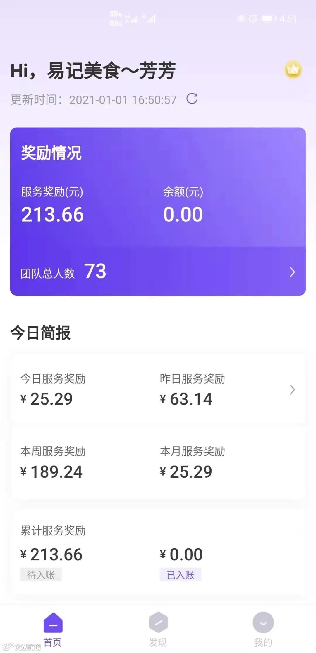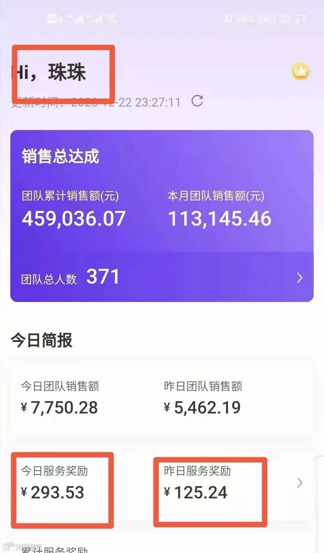 12月底升级,团队总人数已经57人,开始拿到团队奖励